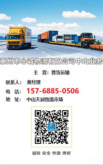 展望未来,惠州市心诚物流有限公司中山业务部 物流将继续秉承 “诚信、专业、创新、共赢” 的经营理念,不断拓展业务领域,提升服务水平,为客户提供更加全面、优质的物流服务,与客户共同发展,共创美好未来。