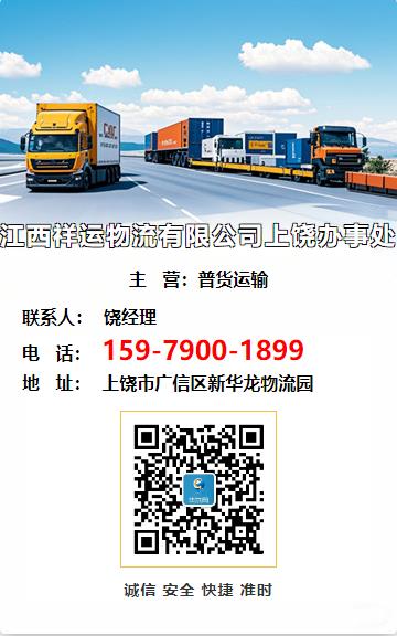 江西祥运物流有限公司上饶办事处 尤为注重定制化服务,深入了解每个客户的业务特点和物流痛点,量身定制专属的物流解决方案。无论是常规的货物运输,还是对时效性要求极高的加急配送,亦或是对运输环境有特殊要求的冷链物流,我们都能凭借专业能力和完善的资源配置,确保货物安全、准时送达。