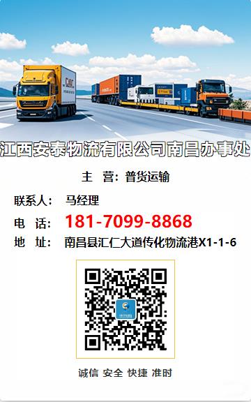 选择 江西安泰物流有限公司南昌办事处,就是选择安心、放心的物流服务。