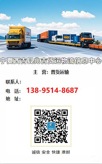 宁夏西吉县兆吉货运物流信息中心 为您提供从 银川 到 黄浦 的优质物流服务: