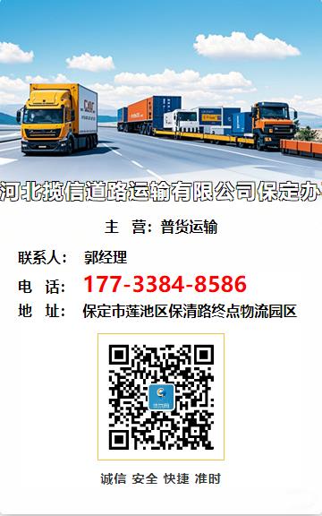 河北揽信道路运输有限公司保定办事处 注重售后保障,让您无后顾之忧。货物送达后,我们会及时跟进客户反馈,处理可能出现的问题。如果货物在运输过程中出现损坏或丢失,我们将按照相关规定进行赔偿。完善的售后保障体系,体现了我们对客户的负责态度。